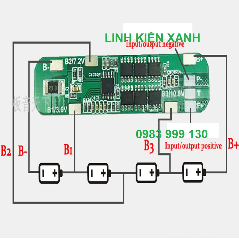 Mạch bảo vệ pin Lithium 4s 12A Li-ion 18650 sạc PCB BMS 14.8VMàu sắc: Xanh