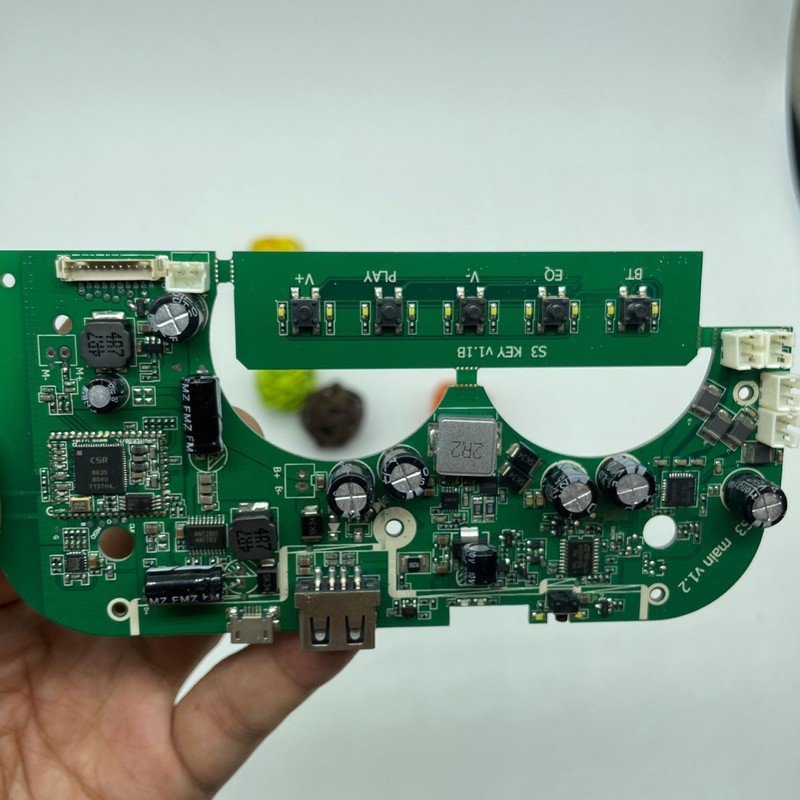 - Mạch sử dụng pin 7.4v, có sạc qua cổng microusb- Chip bluetooth CSR8635