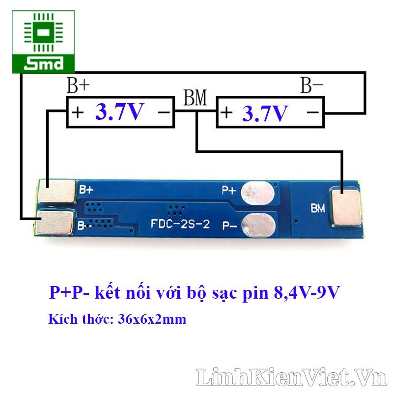Mạch bảo vệ 2 cell lithium 3A có dòng xả tối đa lên lến 3A, được sử dụng để sạc 2 cell pin Lithium hoặc 18650 có điện áp trung bình 3.7~4.2VDC mắc nối tiếp, mạch có chức năng ngắt khi đầy, bảo vệ chập nguồn, quá áp và pin dưới áp quy định.