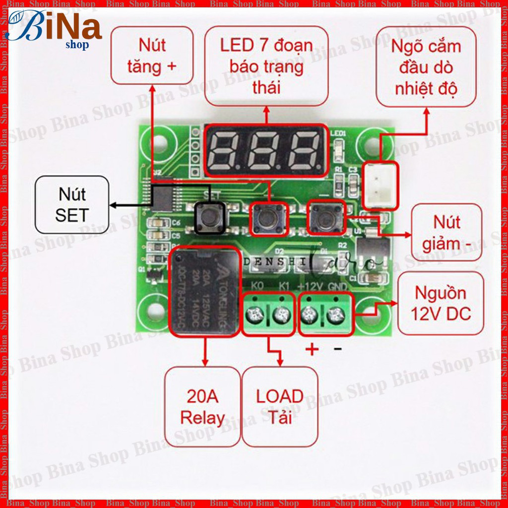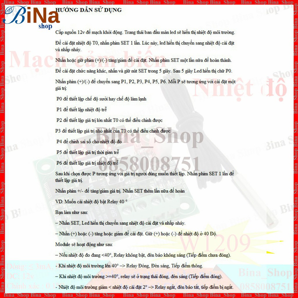 Nhà cửa & Đời sống > Dụng cụ & Thiết bị tiện ích > Dụng cụ > Khác || Mạch cảm biến kiểm soát nhiệt độ W1209 led đỏ, Hộp mica mua riêngCòn hàng