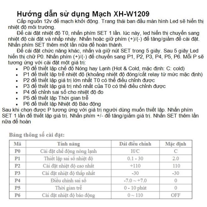 #W1209 #mtu91vn #XH-W1209 #MạchCảmBiếnNhiệtĐộ #12V