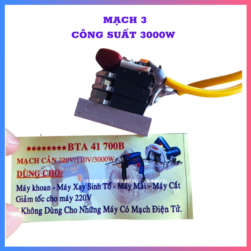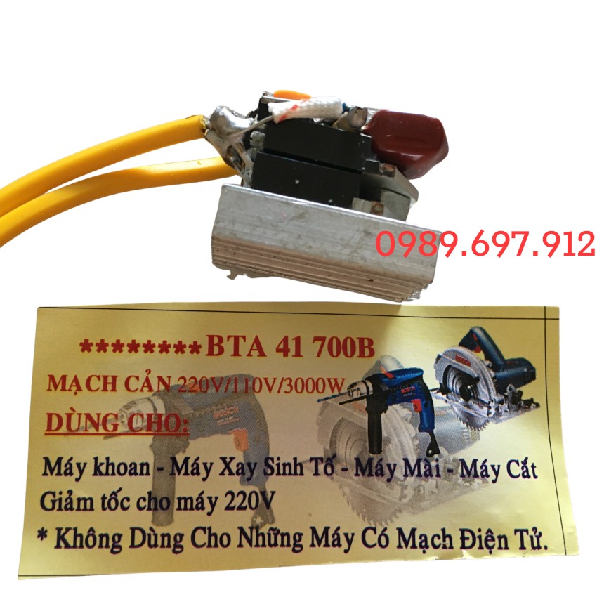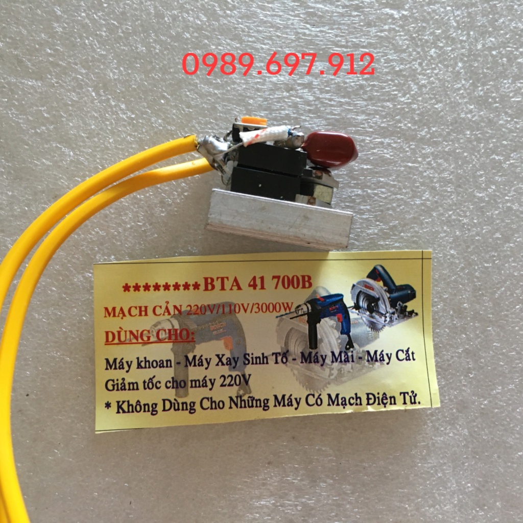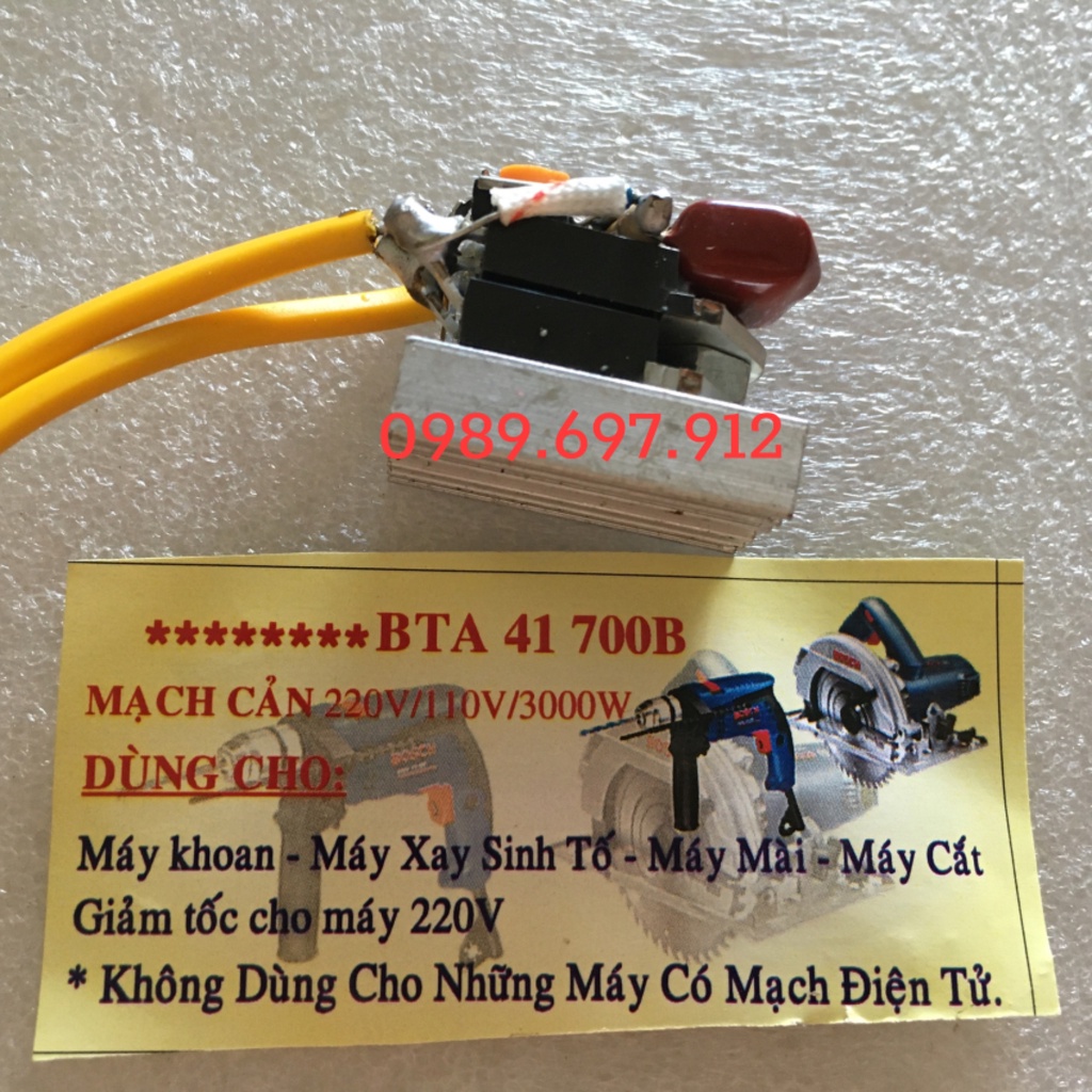 - Đổi nguồn 220v sang 110v áp dụng công nghệ điện tử sử dụng Triac BTA41 với kích thước siêu nhỏ có thể gắn trực tiếp vào trong thiết bị: máy khoan nội địa Nhật, máy mài Nhật, máy cắt nội địa Nhật, máy sấy Nhật bãi, máy xay sinh tố nội địa Nhật,..- Dùng cho thiết bị, dụng cụ điện nội địa Nhật, hàng Nhật bãi có điện 100V hay 110V như: dòng cho máy cơ (máy khoan, máy cắt, máy mài, máy bào, máy xay sinh tố, máy sấy, nồi cơm điện dùng dây mayso...) hay như một Dimmer để giảm tốc cho máy 220V.