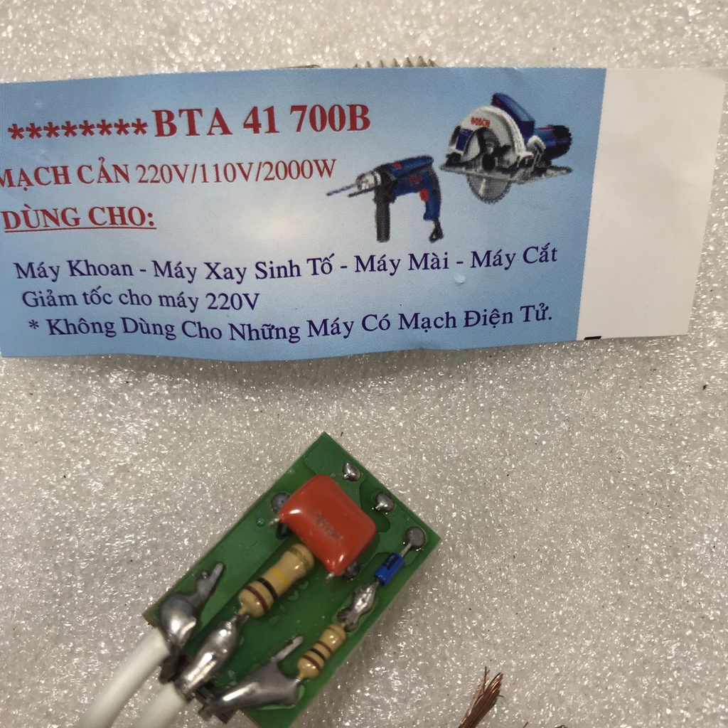 - Mạch cản đơn 2000W đổi nguồn 220V ra 110V 100V chỉ dùng cho tải sợi đốt, áp dụng công nghệ điện tử sử dụng Triac BTA41 700B với kích thước siêu nhỏ có thể gắn trực tiếp vào trong thiết bị, ứng dụng cho các thiết bị nội địa có tải là dây mai so (Mayso) sử dụng điện 100V - 110V và giảm công suất tiêu thụ cho các thiết bị điện 220V.