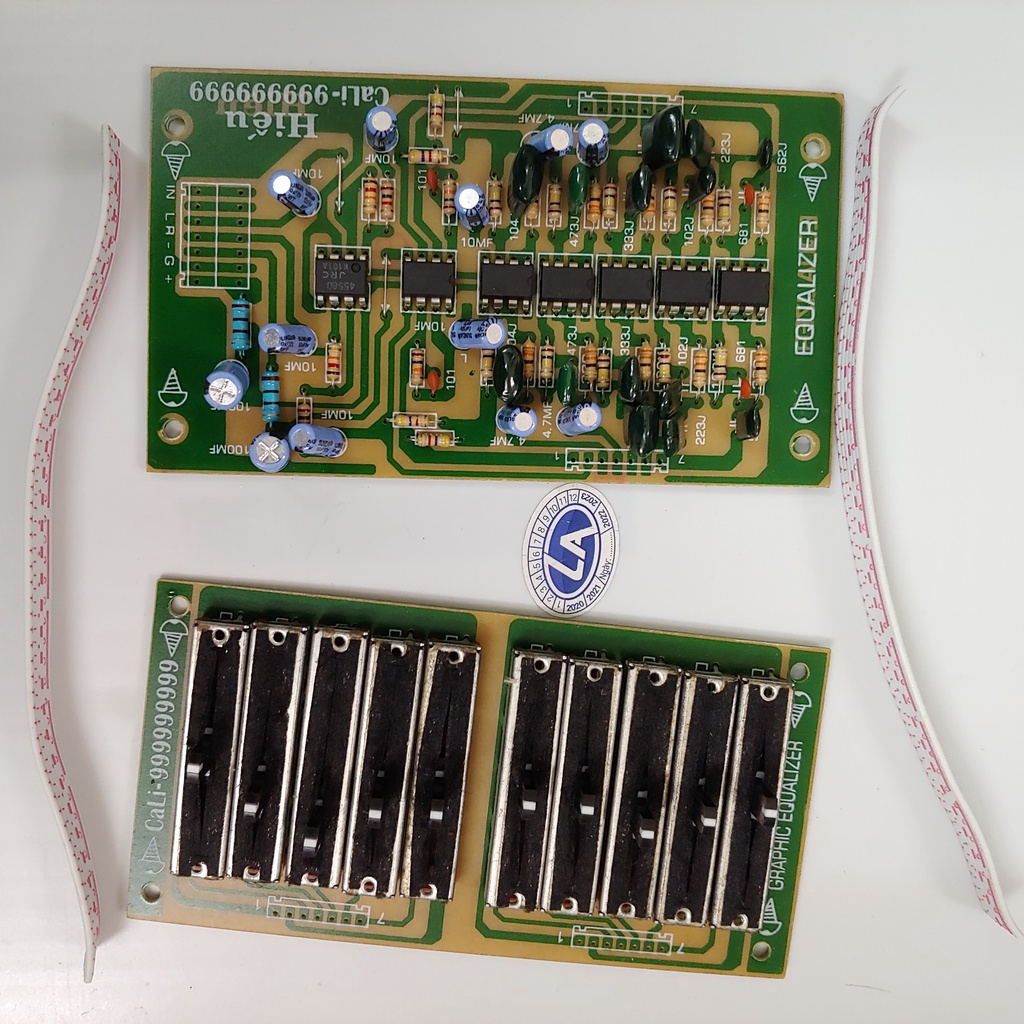 -Loại dùng 7 ic 4558 và cần EQ bằng sắt. Loại này khi mua về các bạn phải tự hàn dây 7 pin để kết nối cực out là 2 cực L và R ở giữa mạch chung chân G