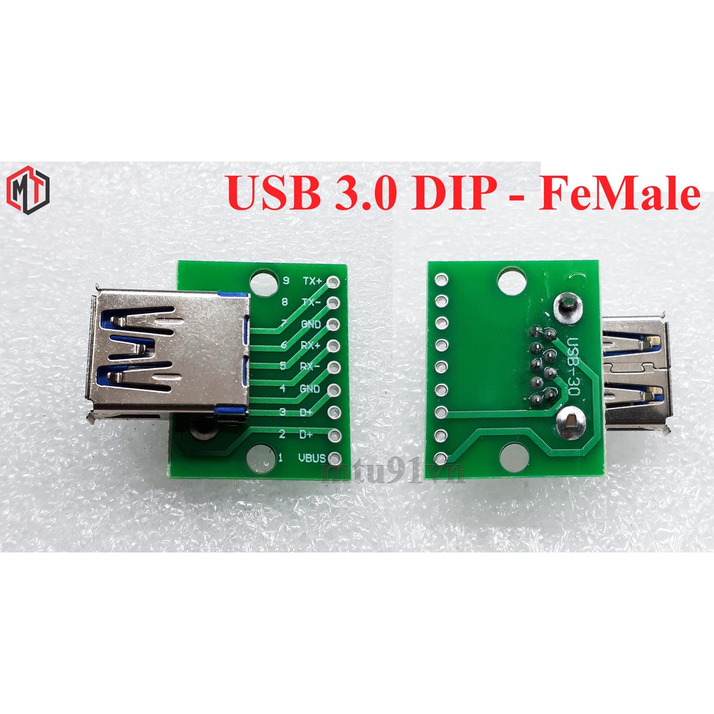 + USB 3.0 Cái : Kt pcb: 1.97x2.49cm, Khoảng cách chân ra: 2.54mm