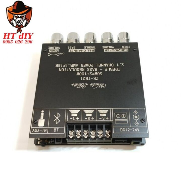 - Mạch có các núm điều chỉnh: vol, bass, treble, sub, tần số sub