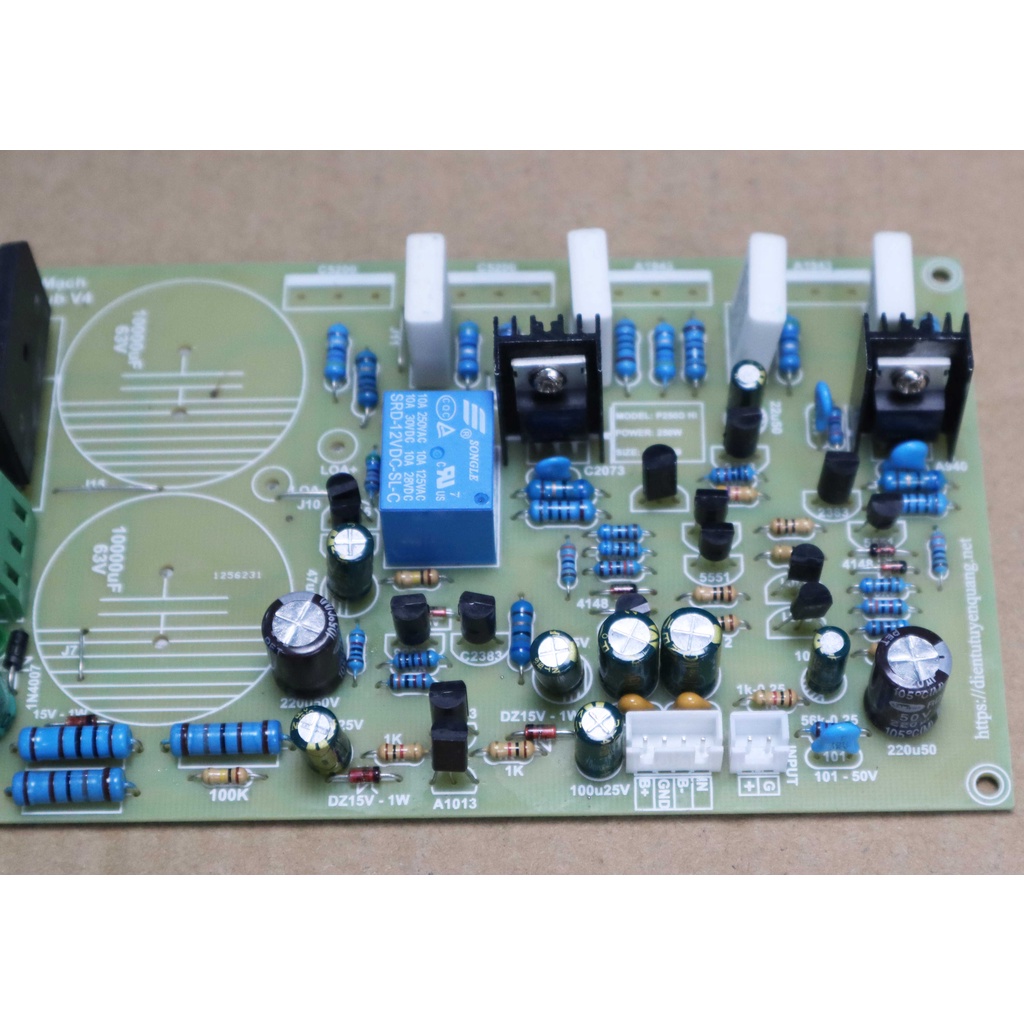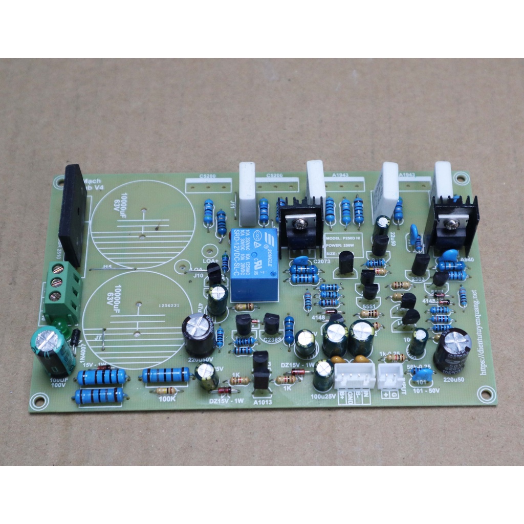 Công suất: 350W/2 cặp sò MJL21193/21194 - 250W/ 2 cặp sò A1943/C5200 - 170W/ 2 căp sò A1941/C5198... Công suất đầu ra còn phụ thuộc vào sò gì, nguồn gì, tụ gì... Khuyên dùng 2 cặp A1943/C5200 loại tốt có thể kéo tốt 1 loa 30 hoặc 40 coil 51 đến 65...