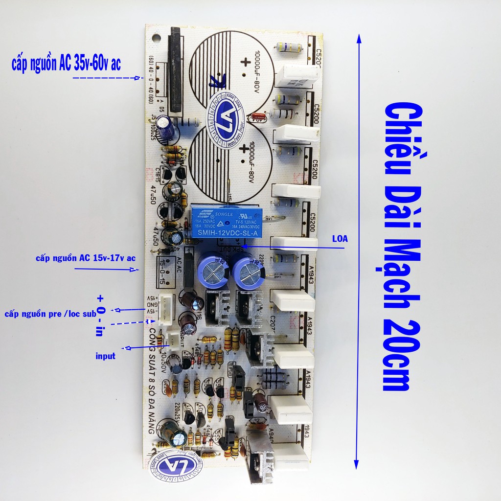 Mạch công suất 8 sò liền nguồn Mạch sử dụng linh kiện tốt làm trên mạch in sợi thủy tinh giúp tăng độ bền sản phẩmGiá trên gồm 1 mạch,