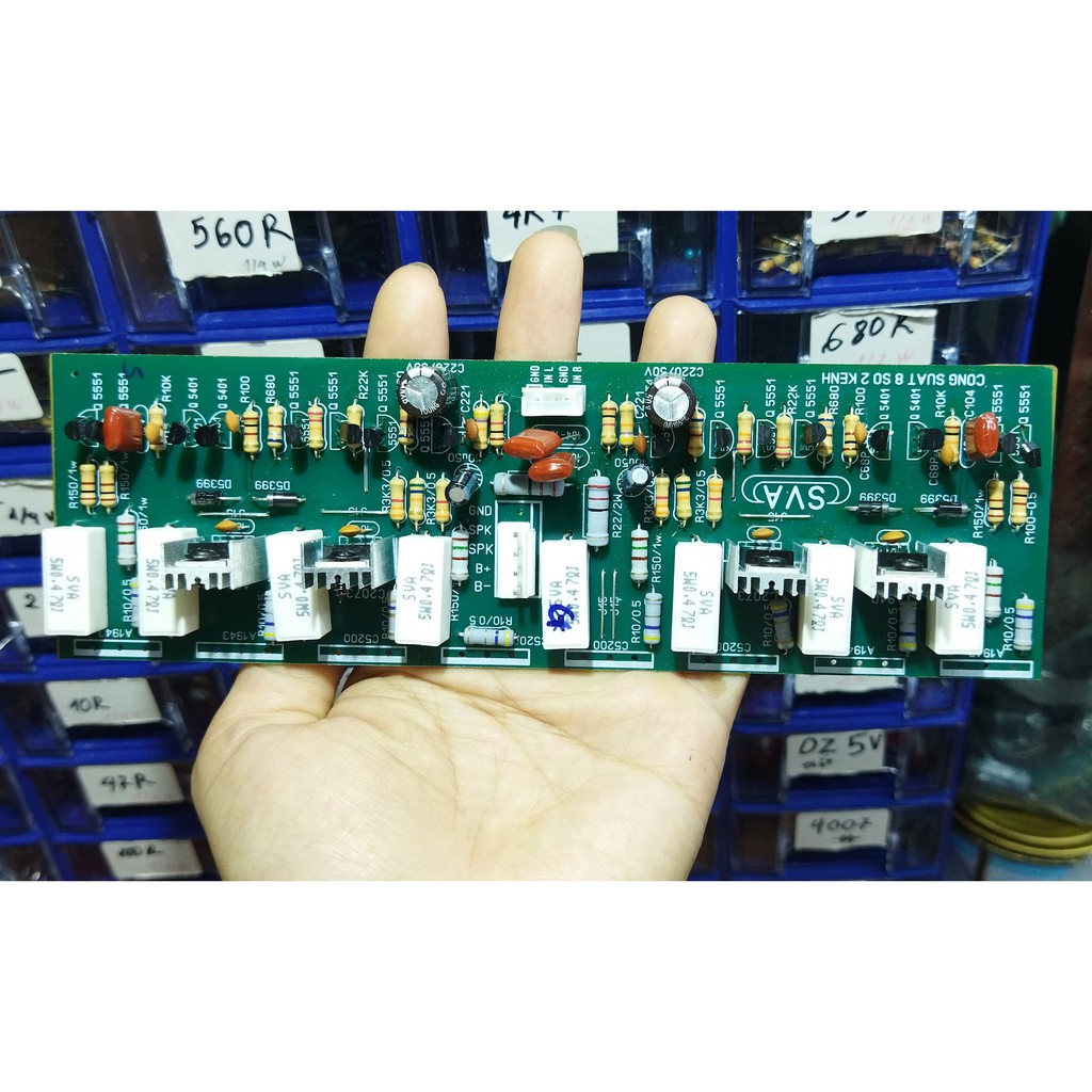 Mạch Công Suất 8 Sò Stereo 2 kênh chất âm tốtĐiện áp: +/-35 đến +/-55V (có thể thay trở 100 ôm thành 680 ôm để chạy áp cao hơn tối đa tới +/-75VDC)