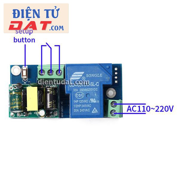 Sản phẩm được thiết kế với điện áp ngõ vào trực tiếp 220VAC rất thuận tiện khi sử dụng. Ngoài ra, mạch sử dụng relay số 7 cho hiệu suất cao với dòng tải tối đa lên đến 30A phù hợp đóng ngắt điện áp AC và DC.