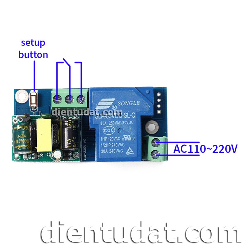 Sản phẩm được thiết kế với điện áp ngõ vào trực tiếp 220VAC rất thuận tiện khi sử dụng. Ngoài ra, mạch sử dụng relay số 7 cho hiệu suất cao với dòng tải tối đa lên đến 30A phù hợp đóng ngắt điện áp AC và DC.