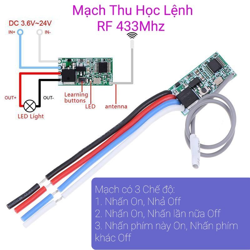 Mạch Điều Khiển học lệnh RF 433Mhz DC 3.6 - 24V