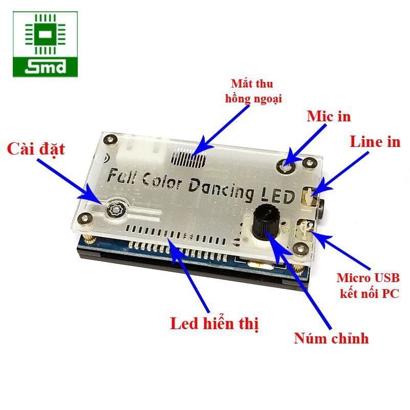 - Bật/Tắt cột nhạc, chọn hiệu ứng, tăng giảm độ sáng bằng remote điều khiển từ xa.