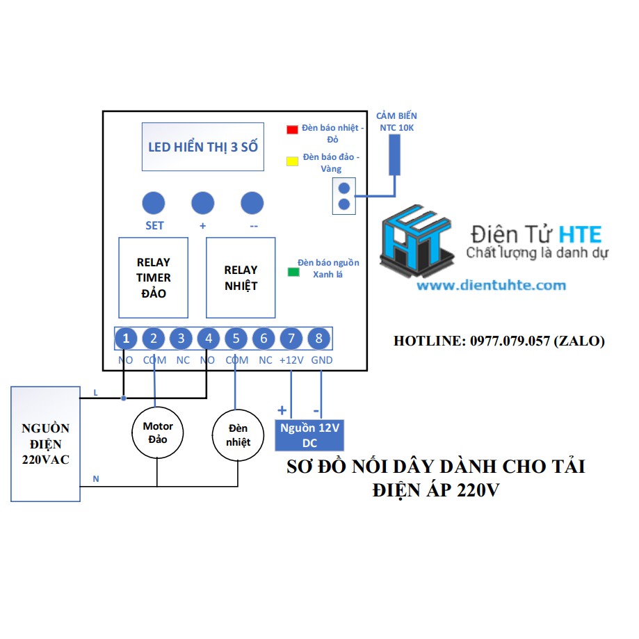 ĐIỆN TỬ HTE - KHO QUY NHƠN - CHI NHÁNH 2Mạch điều khiển nhiệt độ ấp trứng - đảo tự động hoàn toàn - đếm số ngày ấp trứng HTE-W1209ST