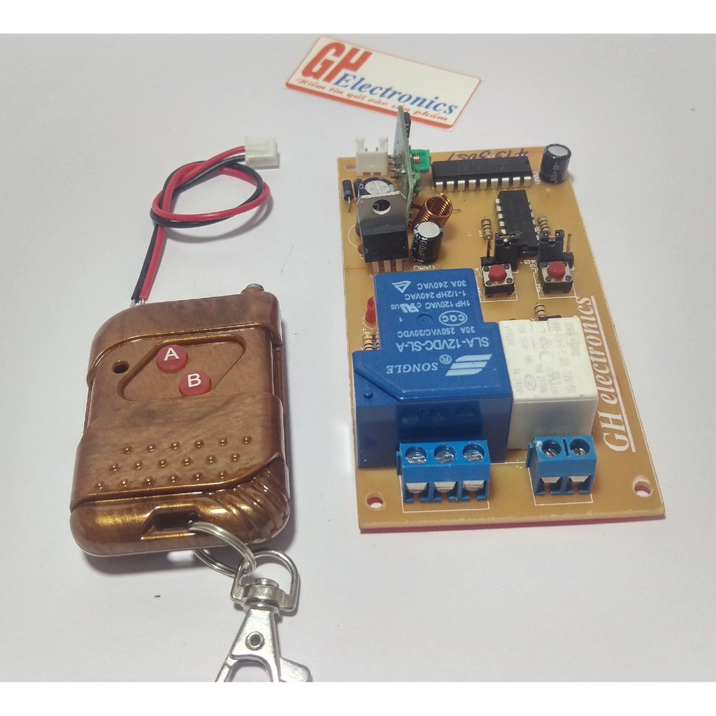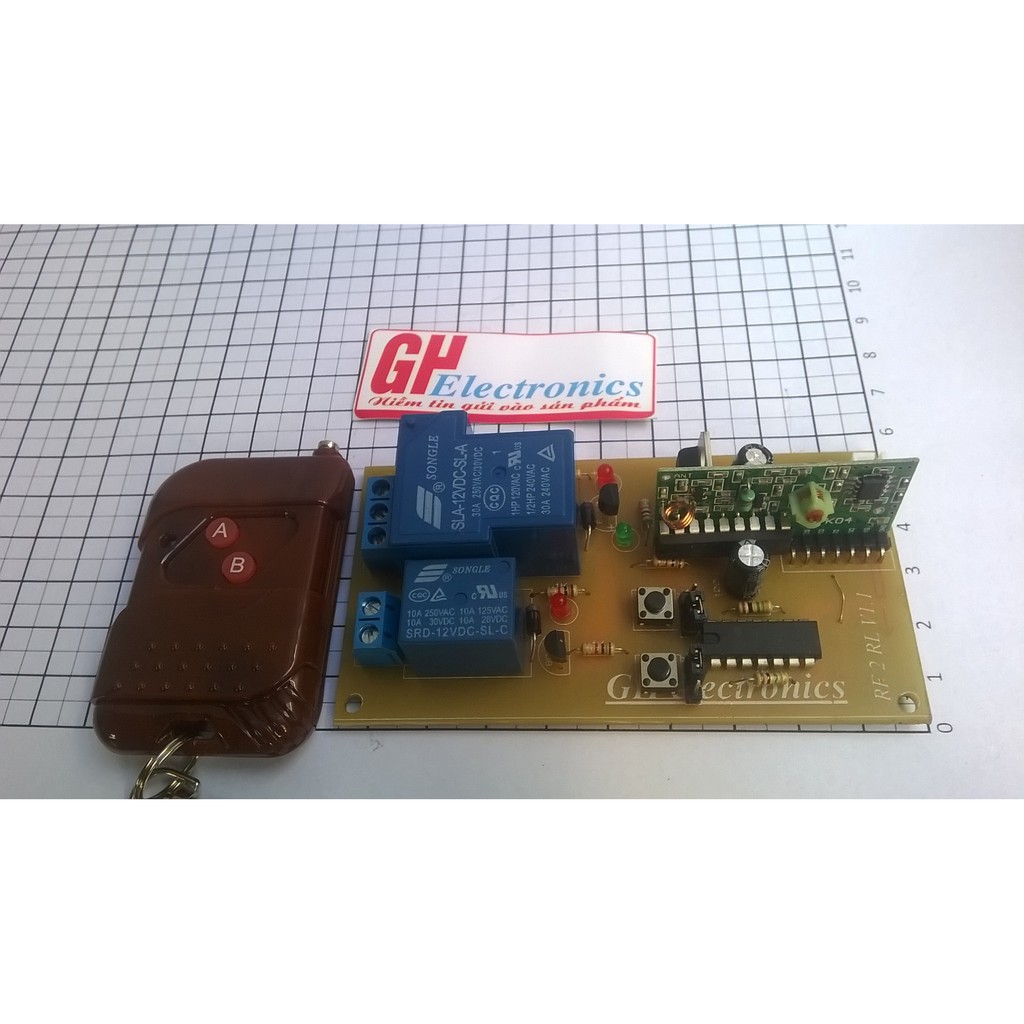 Bo mạch điều khiển từ xa 2 kênh hoạt động độc lập, 2 chức năng (chốt và không chốt).Sử dụng điện áp 12V, công suất đóng cắt 500W trở xuống (có một kênh công suất lên đến 1500w).