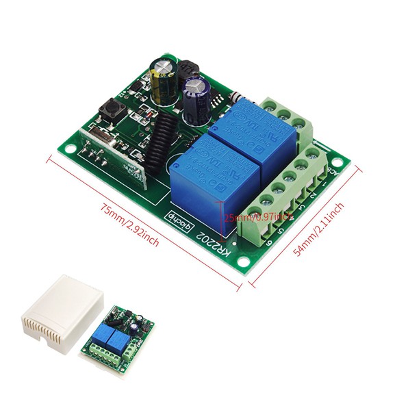 + Sản phẩm gồm: 01 mạch điện + 01 Remote kèm pin