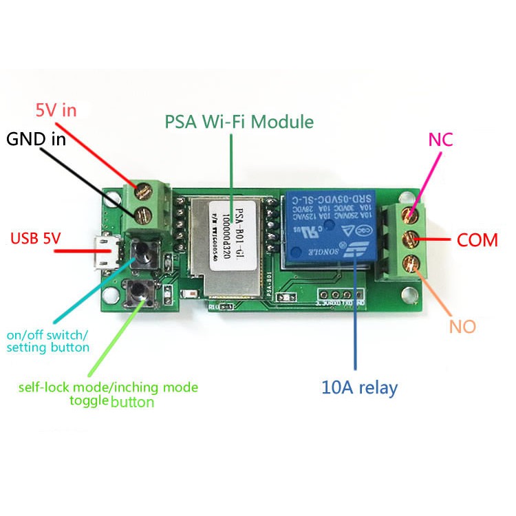 Mạch sonoff 5v điều khiển qua ứng dụng ewelink có tính năng tự nhả relay sau 1s thích hợp thay thế cho điều khiển loại nút nhấn.Mạch có 2 chế độ hoạt động có thể thay đổi bằng nút nhấn và được báo hiệu bằng đèn LED: