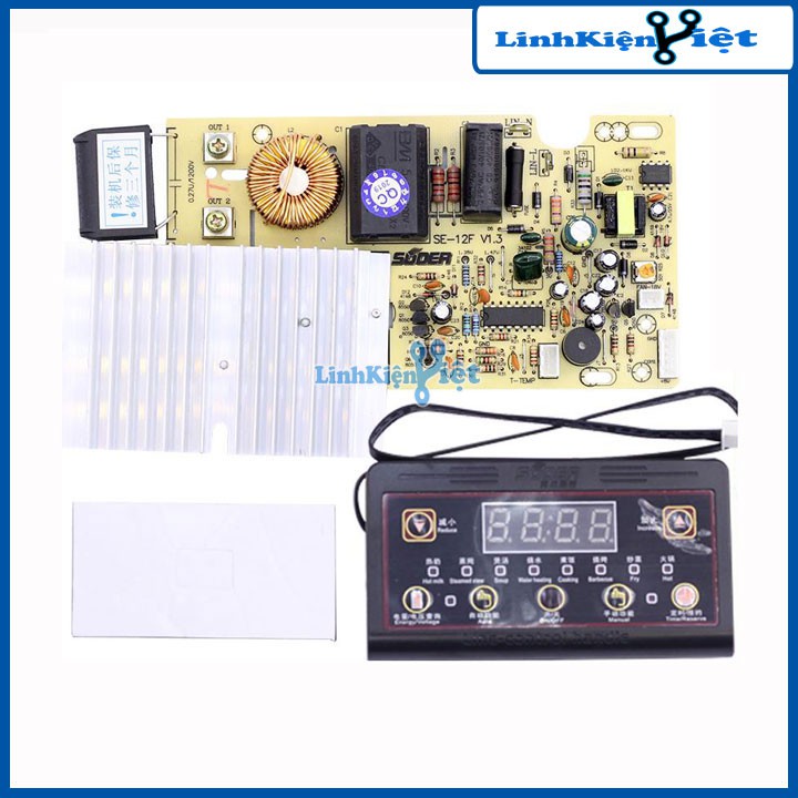 Mach Điều Khiếp Bếp Từ - Mạch Bếp CơMach Điều Khiếp Bếp Từ - Mạch Bếp Cơ Sử dụng để thay thế cho những bếp từ không thể sửa được bo. Sử dụng và lắp đặt dễ dàng. Sau khi lắp đặt phải hiệu chỉnh công suất của mạch về dải an toàn, dòng tiêu thụ khoảng 7.5-8A. Bo mạch cho bếp từ công suất tối đa là 1800W, thường sử dụng với những bếp không sửa được bo, lắp đặt dễ dàng. Bo mạch thiết kế với tấm nhiệt to có khả năng tản nhiệt tốt cho bo mạch.