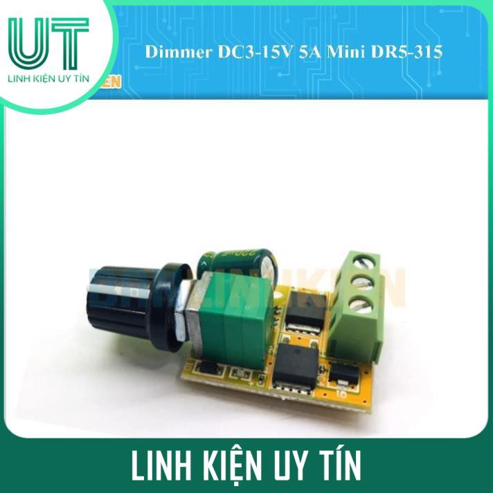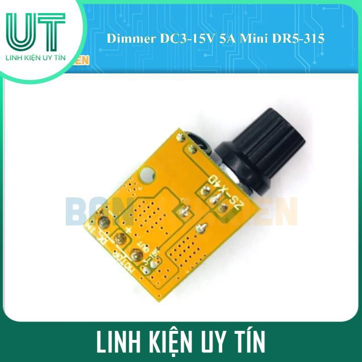 A. Dimmer DC4.5-35V 5A Mini DR5MNMạch PWM DC mini 5A thường được sử dụng điều khiển tốc độ động cơ DC hoặc điều khiển độ sáng tối của đèn,... với công suất tối đa 90W, dòng tải tối đa 5A, điện áp hoạt động từ 3 - 35VDC.