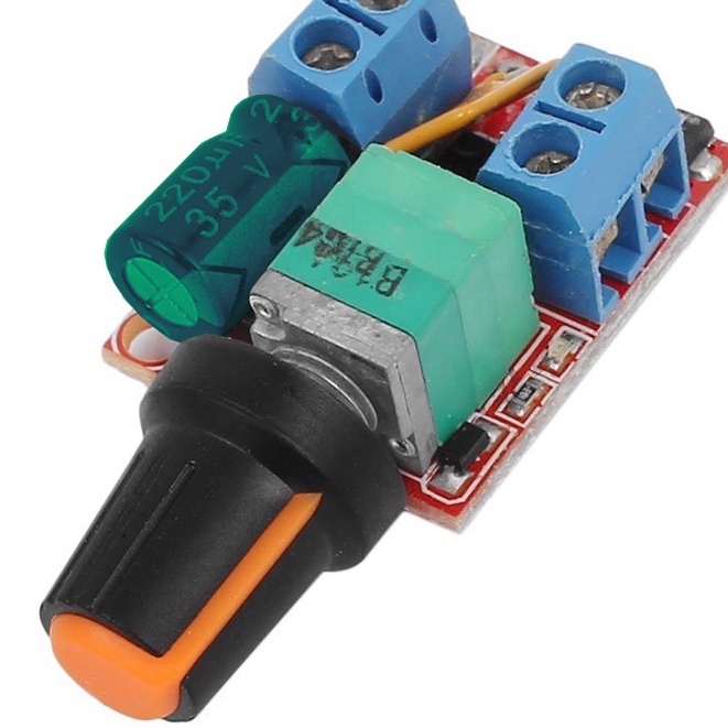 Mạch PWM DC mini 5A thường được sử dụng điều khiển tốc độ động cơ DC hoặc điều khiển độ sáng tối của đèn,... với công suất tối đa 90W, dòng tải tối đa 5A, điện áp hoạt động từ 3 - 35VDC.