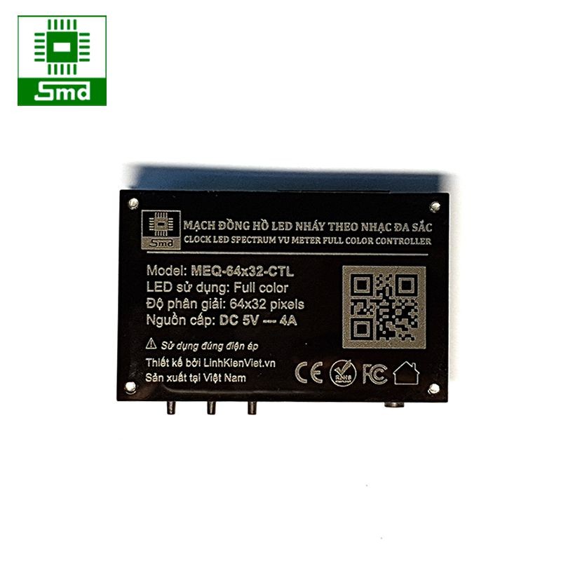 Mạch Đồng Hồ LED Nháy Theo Nhạc Đa Sắc có thể kết nối đến các tấm LED matrix full color có độ phân giải 64x32 pixels hoặc ghép nối 4 tấm có độ phân giải 32x16 pixels.
