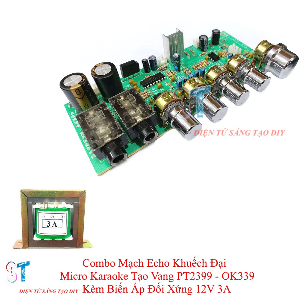 - Mạch echo khuếch đại micro karaoke tạo vang PT2399 - OK339 là mạch khuếch đại tín hiệu âm thanh và echo karaoke với công nghệ trộn âm thanh hai chiều có thể điều chỉnh được âm lượng nhạc, âm lượng micro, echo bằng chiết áp trên mạch.- Mạch khuếch đại micro karaoke OK339 hỗ trợ 2 micro có dây, với chức năng chỉnh âm lượng và echo giúp bạn hiệu chỉnh được độ vang mong muốn. Ngoài ra, mạch còn được tích hợp chip opamp 4558D hỗ trợ điều chỉnh âm sắc volume bass treble.