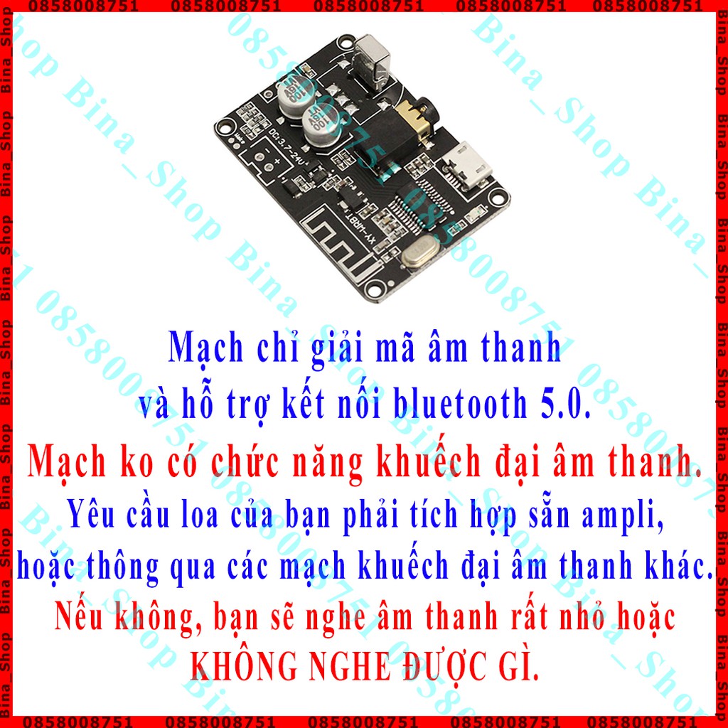 - Đây là mạch giải mã âm thanh, KHÔNG PHẢI mạch khuếch đại âm thanh, không có khả năng khuếch đại tiếng