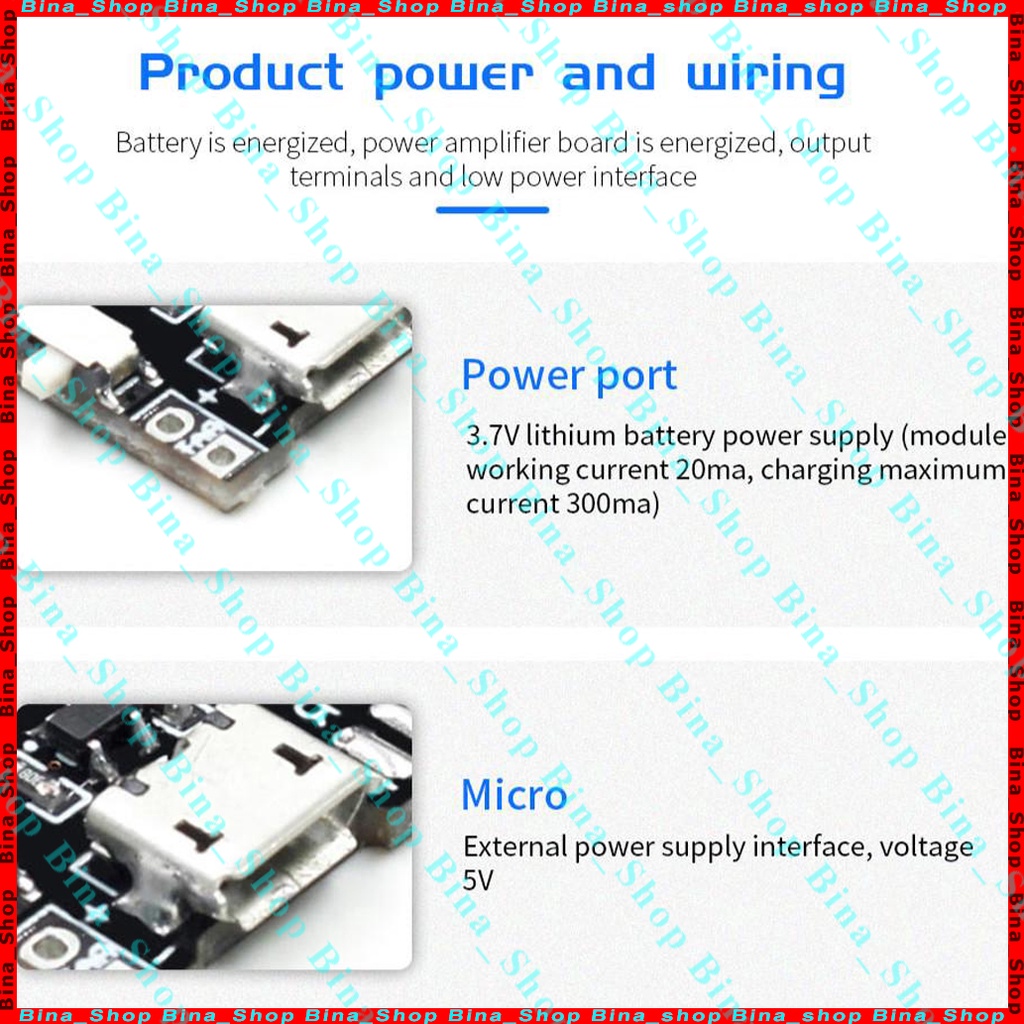 - Nguồn điện phù hợp : Pin 1S, Lithium 3,7V-4.2V, pin dự phòng... nếu dùng acquy thì cần qua mạch hạ áp về 5V (mạch LM2596, XL4005, XL4015...đang có bán tại #Bina_Shop)