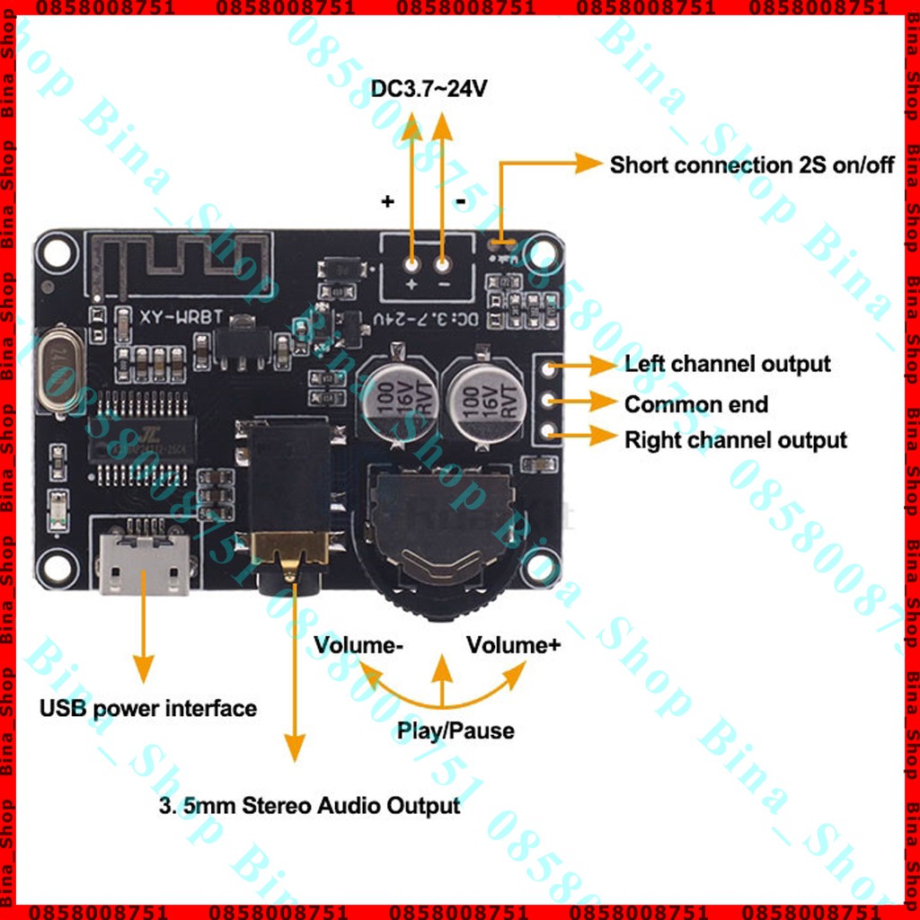 Mạch giải mã âm thanh Bluetooth 5.0 XY-WRBT DC 3.7V-24VĐây là mạch giải mã âm thanh, KHÔNG PHẢI mạch khuếch đại âm thanh, không có khả năng khuếch đại tiếng