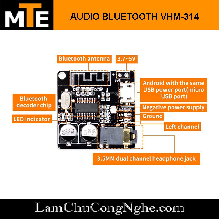 Giới thiệu Mạch giải mã âm thanh MP3 Lossless chế loa Bluetooth 5.0 VHM-314