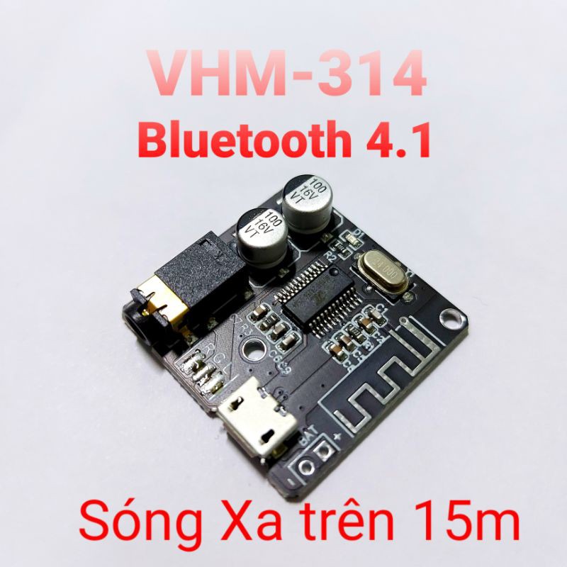 Mô tản sản phẩmMạch giải mã Bluetooth VHM-314 hoặc XWF-314 phiên bản Bluetooth 5.0 có nhiều ưu điểm như kích thước nhỏ gọn, nguồn tiêu thụ cực nhỏ, khoảng cách thu sóng ổn định từ 15m đến 20m trong không gian trống.