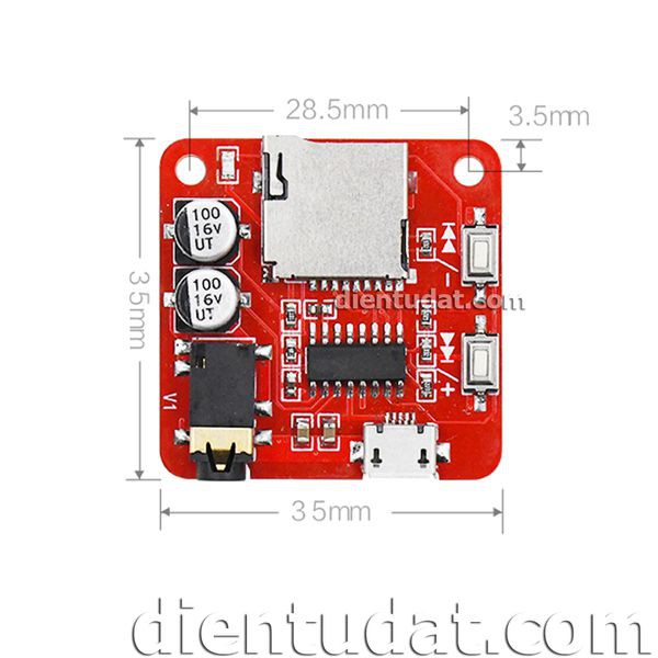 Mạch Giải Mã Khuếch Đại Âm Thanh Thẻ Nhớ TF - A261 có chức năng giải mã tín hiệu âm thanh từ thẻ nhớ TF, ngõ ra cổng audio 3.5mm.Mạch được thiết kế nhỏ gọn với 2 nút điều khiển chức năng trên mạch giúp thuận tiện hơn khi sử dụng.