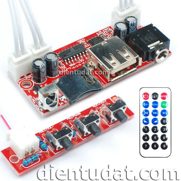 Mạch Giải Mã MP3 TF USB Kèm Bàn Phím - Remote Hồng Ngoại có chức năng giải mã âm thanh từ USB, thẻ nhớ. Mạch được tích hợp mắt đọc hồng ngoại giúp điều chỉnh các chức năng của mạch thông qua remote hồng ngoại. Ngoài ra cũng có thể sử dụng bộ bàn phím đi kèm để điều chỉnh các chức năng của mạch.Thông số kỹ thuật: