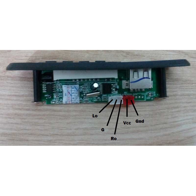 Các chân Lo, Ro, G là các tín hiệu ra.( Tín hiệu audio Left, Right, và chân mass).