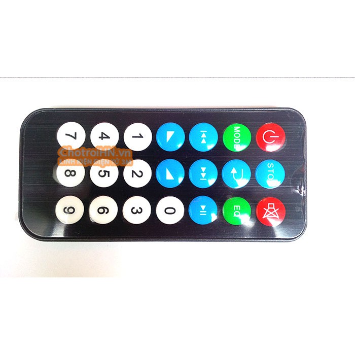 + Trên điều khiển có Nút nguồn, STOP, quay lại, MODE, chuyển bài, có các chức năng như trên mạch giải mã ngoài ra còn có thêm các nút: