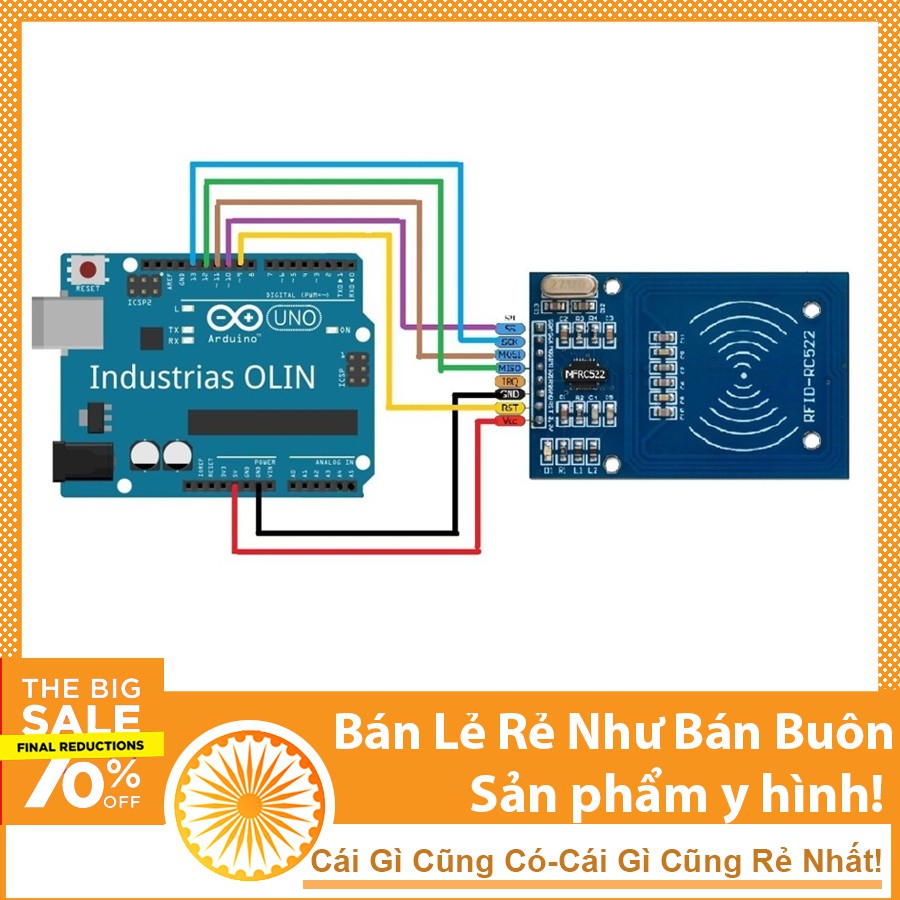 - Module RFID RC522 sử dụng IC MFRC522 của Phillip dùng để đọc và ghi dữ liệu cho thẻ NFC tần số 13.56mhz, với mức giá rẻ thiết kế nhỏ gọn, module này là sự lựa chọn hàng đầu cho các ứng dụng về ghi đọc thẻ RFID.
