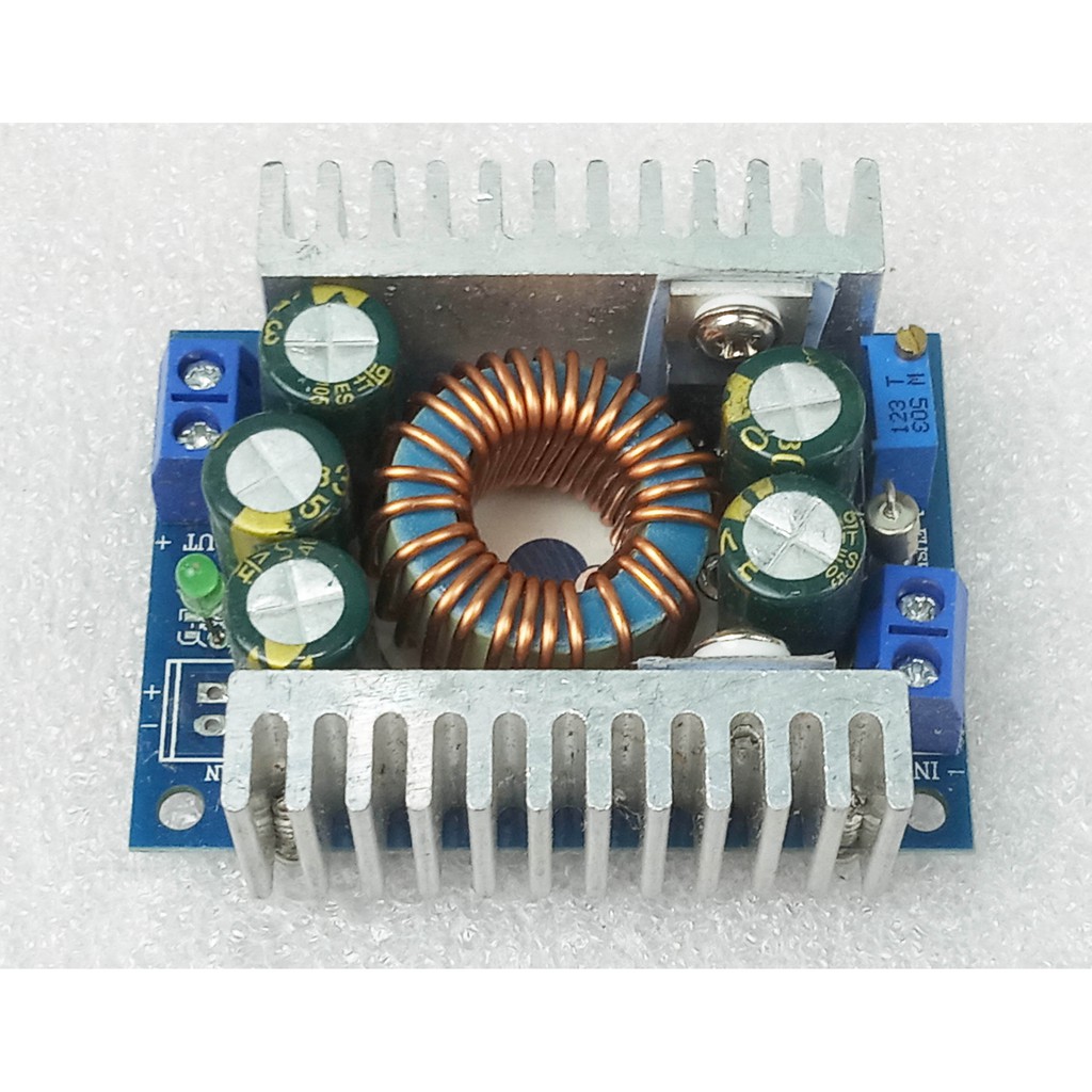 Mạch giảm áp DC hiệu suất cao 95% sử dụng ở dải điện áp 4.5-30V, dòng đầu ra lên tới 12A, thích hợp cho các ứng dụng giảm áp cần công suất lớn. Mạch được thiết kế dễ dàng sử dụng với một đầu cấp điện áp và một ngõ ra được điều chỉnh điện áp ra bằng biến trở tinh chỉnh được gắn trực tiếp trên board. Board được gắn thêm 2 miếng nhôm tản nhiệt cỡ lớn giúp quá trình tản nhiệt tốt hơn giúp công suất của board được cao hơn.Thông số kỹ thuật: