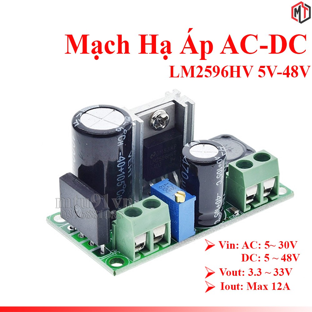 - Là phiên bản điện áp cao của mạch LM2596, điện áp đầu vào tối đa là 50V (giới hạn bởi tụ lọc)- Đầu vào sử dụng Cầu Chỉnh Lưu 4A để cấp nguồn AC và có cổng đầu vào donimo,