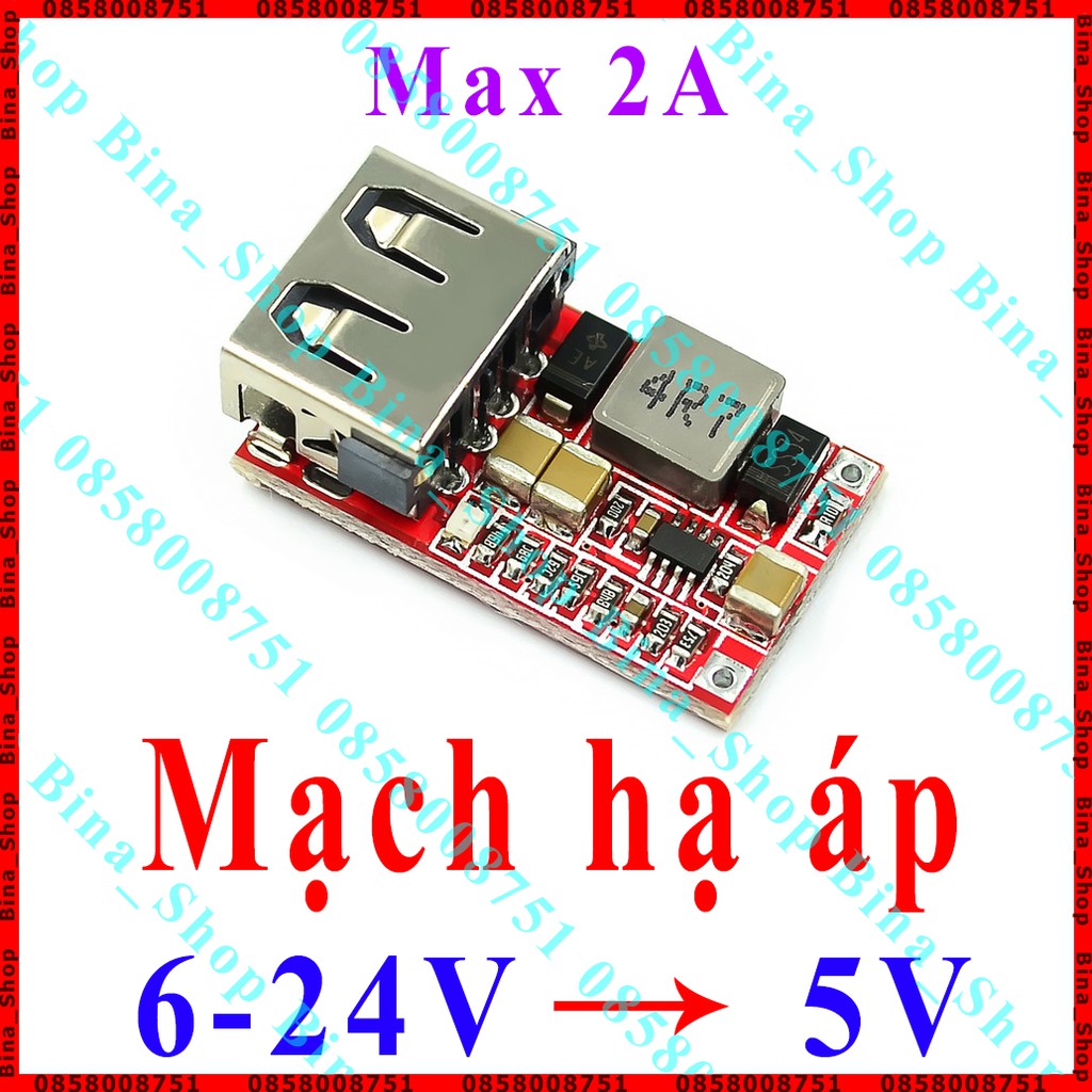 Mạch hạ áp 6-24V xuống 5V chế sạc dự phòngĐiện áp đầu vào : DC 6-24V