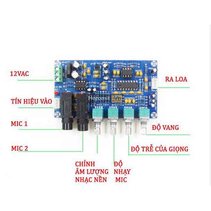2. Mạch Karaoke chưa bao gồm khuếch đại công suất ra loa , các volume điều chỉnh chỉ điều chỉnh âm sắc của MIC