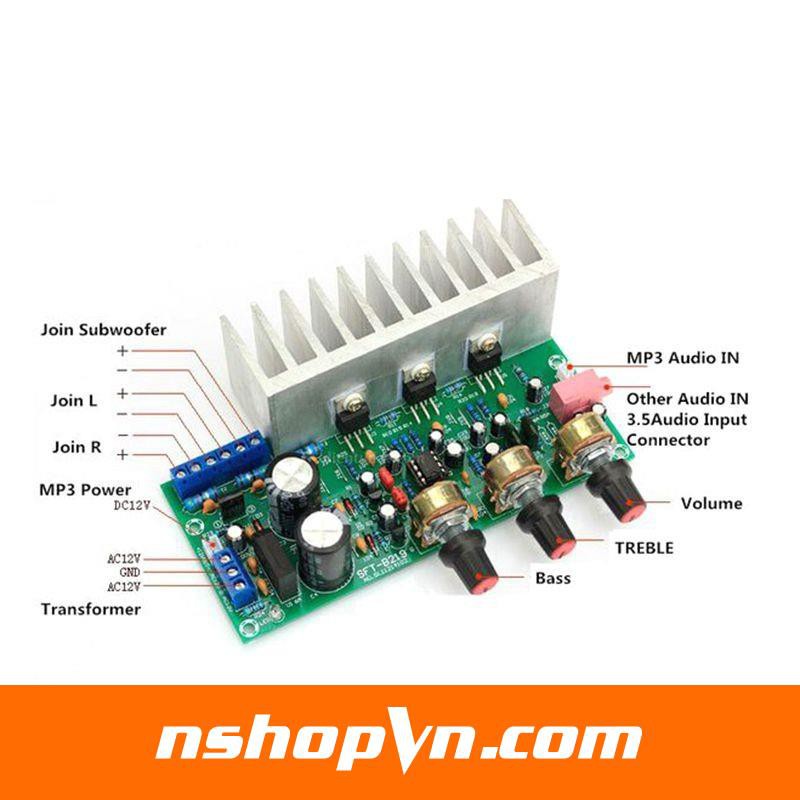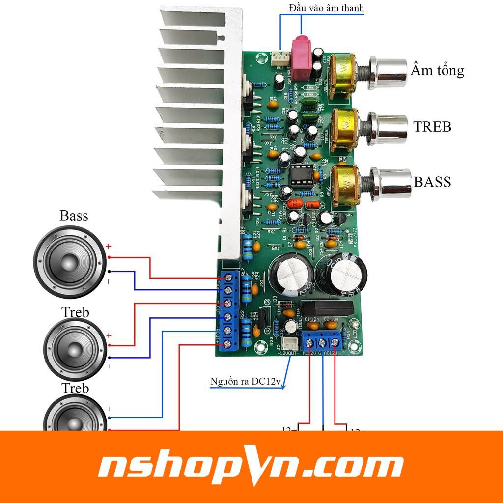 Công suất loa trầm: TDA2050Ax1, công suất cực đại: 32W, 5-8 inch, nên sử dụng loa trầm 4-8 ohm