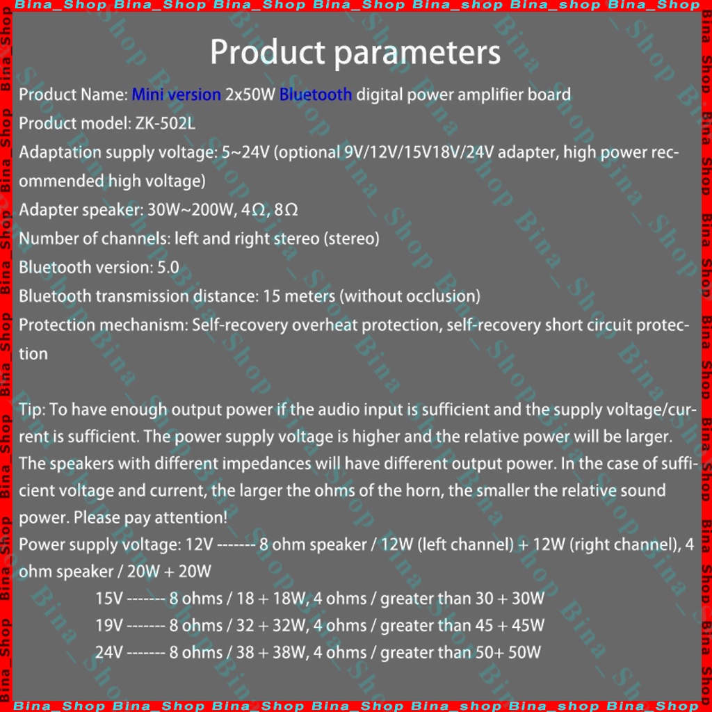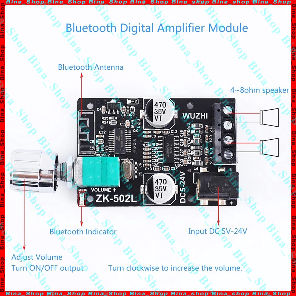 Mạch khuếch đại âm thanh Bluetooth 5.0 DC 5-24V 2x50W ZK-502LModel : BT-WUZHI (tên ghép nối thiết bị)