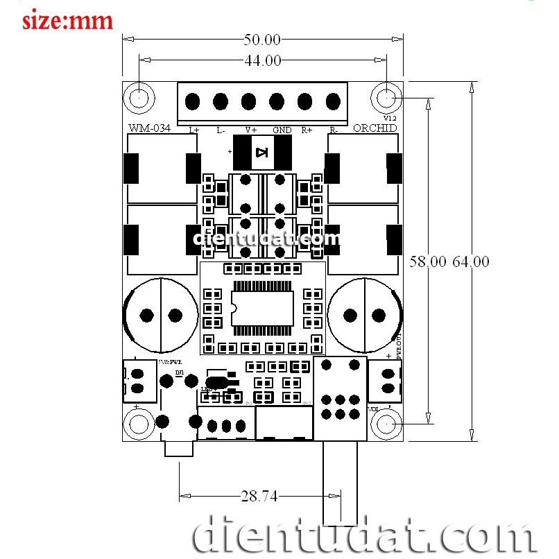 Mạch khuếch đại âm thanh TPA3116D2 hifi 2.0 - 2x50W sử dụng chip khuếch đại class D TPA3116D2 cho ngõ ra 2 kênh với công suất mỗi kênh 50W.Mạch sử dụng điện áp DC với dải điện áp từ 10 - 25V. Ngoài ra ở model này còn được thiết kế 2 ngõ ra điện áp, trong đó có 1 ngõ ra điện áp cố định 5V và 1 ngõ ra điện áp bằng điện áp ngõ vào giúp bạn thuận tiện hơn trong việc kết nối nguồn vào cho các thiết bị khác như mạch bluetooth, mạch chỉnh âm sắc,...