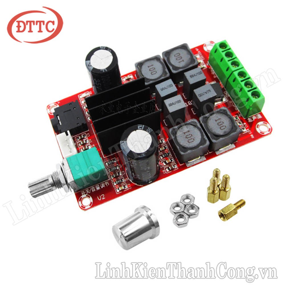 - Mạch khuếch đại âm thanh TPA3116D2 sử dụng IC TPA3116D2 từ chính hãng Texas Instruments cho công suất khuếch đại 2x50W đặc điểm ưu việt của khuếch đại tín hiệu âm thanh Class D là ít tỏa nhiệt, hiệu suất ngõ ra cao và kích thước nhỏ gọn, mạch có thể điều chỉnh âm lượng ngõ ra trực tiếp trên board bằng volume, âm thanh ngõ vào qua cổng 3.5mm.