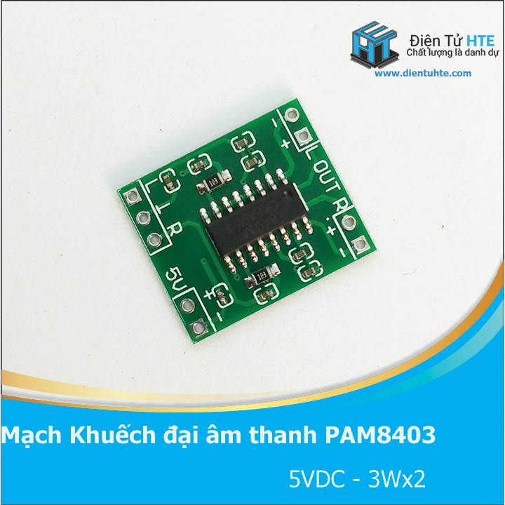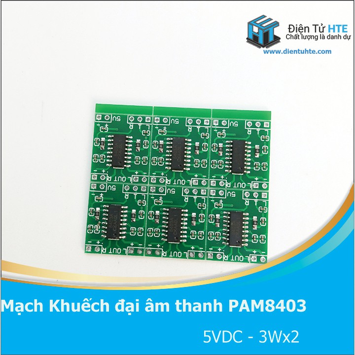 Mạch khuếch đại âm thanh PAM8403 thiết kế để tích hợp đầy đủ các chân điều khiển của PAM8403 giúp dễ dàng điều khiển và tùy biến. Chuẩn khuếch đại Class D mang lại âm thanh chất lượng cao và hiệu suất vượt trội.
