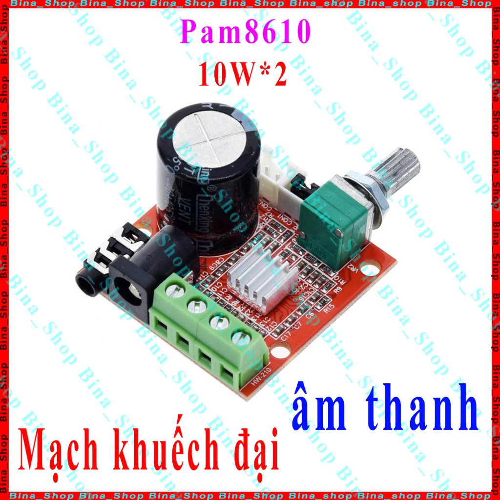 Mạch khuếch đại âm thanh PAM8610 2x10W có Volume (không kèm núm nhựa)Điện áp hoạt động : 8-14V (cổng DC 5.5)