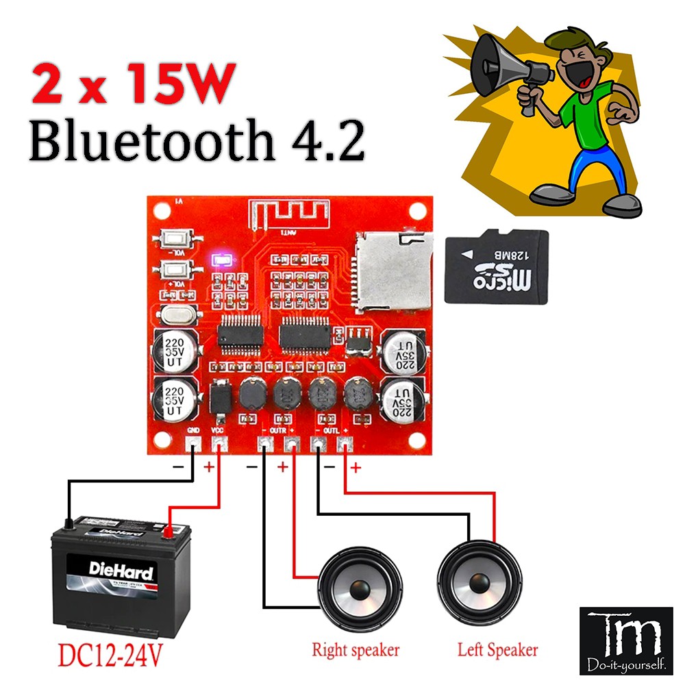 📣 Mạch Khuếch Đại Âm Thanh Bluetooth 4.2 XH-A233 là sản phẩm mạch giãi mã âm thanh từ thẻ SD/bluetooth 4.2 kết hợp mạch khuếch đại kỹ thuật số ClassD cho công suất ngõ ra lên đến 15Wx2. Sản phẩm thích hợp sử dụng để chế loa cầm tay, loa bluetooth, loa máy tính.📌 -- THÔNG SỐ KỸ THUẬT