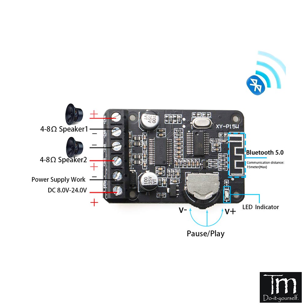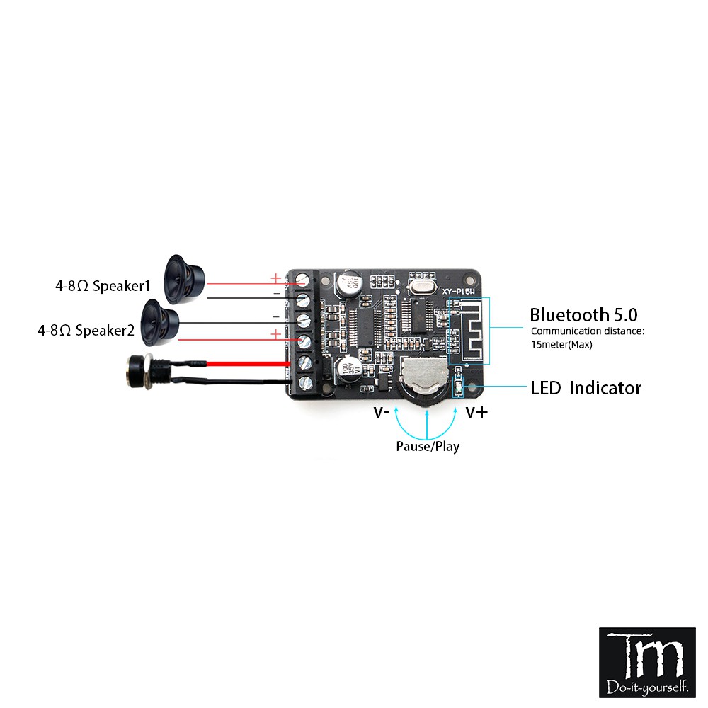 🛠 Chú ý bảo vệ tĩnh điện. Trước khi chạm vào bảng khuếch đại công suất, bạn cần giải phóng tĩnh điện trên tay để tránh tĩnh điện xâm nhập vào chip. Chip Bluetooth nhạy cảm với tĩnh điện. Nên điều chỉnh công suất định mức của loa thành 30W trở lên để tránh làm cháy loa.