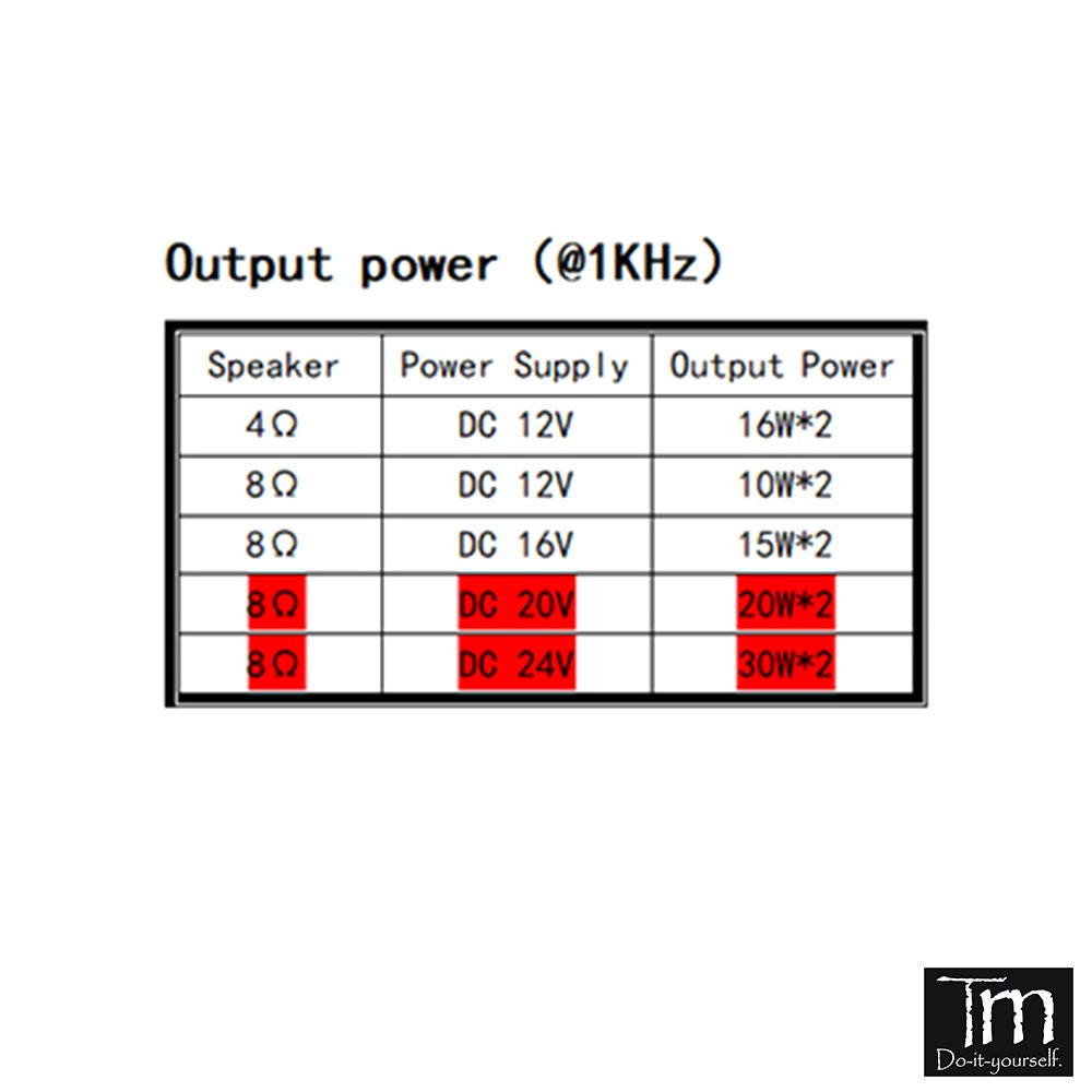 🛠 Nguồn điện không vượt quá 12V khi được kết nối với loa 4Ω và nguồn điện không vượt quá 24V khi được kết nối với loa 8 ohm. Dòng cung cấp được khuyến nghị là 2A trở lên. +Công suất mô-đun vượt quá 20W * 2, cần thêm tản nhiệt