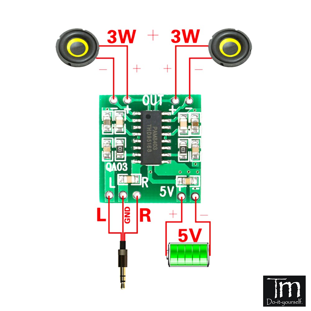 📣 Mạch Khuếch Đại Âm Thanh 3W PAM8403 có tích hợp bộ lọc nhiễu cho tín hiệu tốt hơn, để mạch đủ công xuất 3W cho mỗi kênh thì nguồn đầu vào cần phải là 5V - 1.2A, có thể kết nối trực tiếp với loa 4Ω / 8Ω.📣 Mạch sử dụng IC PAM8403 được thiết kế Class-D được tích hợp bộ lọc L-C, module được thiết kế nhỏ gọn giúp thiết kế những ứng dụng nhỏ gọn và có thể mang đi.